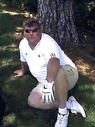 The foursome was rounded out by Matt Alefetich this week who joined JK, Sam and me. I shot an 89, not that good for me. We had fun afterward hanging out at the roach coach drinking Amberbach. We especially liked when Matt's wife, Cindy showed up looking for him. It was a "real ball and chain" moment, but Matt handled it well and Cindy sat and chatted with us for a while.