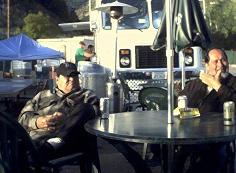 I made a video of today and took photos with a regular camera instead of my antique Computer Folk Art low-res camera. Click here to see that stuff. It includes video of Lou Flores and Sam. Remind me to write more about the high quality food that comes out of that "roach coach" run by Ray and Shelly.